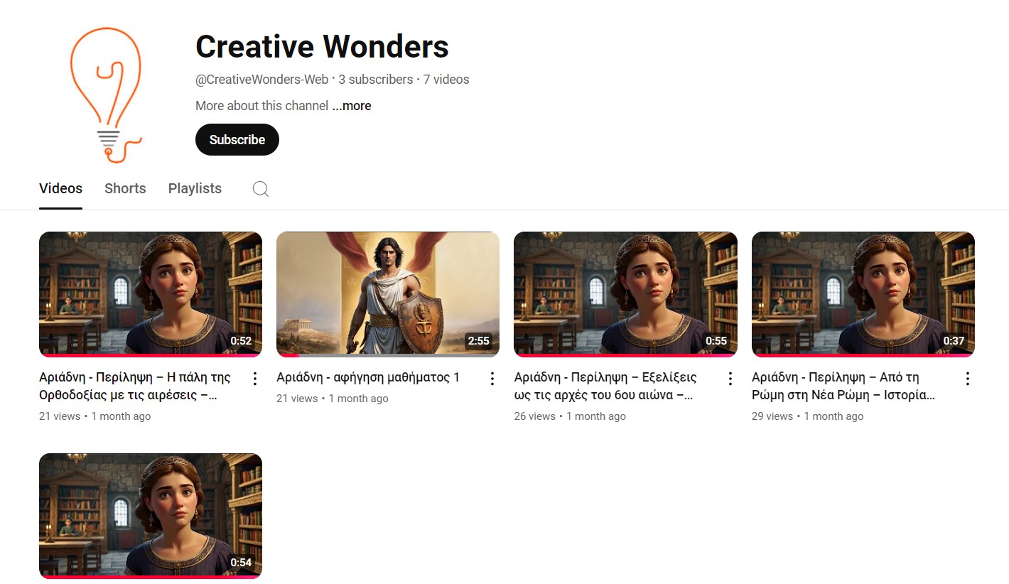 Η Αριάδνη είναι η αφηγήτρια της Ιστορίας. Αφηγείται τα μαθήματα, ενώ ταυτόχρονα τα παιδιά βλέπουν σχετικές εικόνες μαζί με το κείμενο της αφήγησης. Έτσι, τα παιδιά έχουν μια ολοκληρωμένη εμπειρία μάθησης που διαθέτει εικόνες, ήχο και κείμενο.